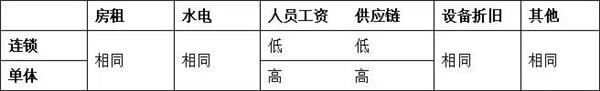 供应链成本。连锁的优势主要看进货量和账期,本质就是资金使用效率,我想这个连锁是有优势的,就不需要辩论了。哪个供应商也不会看着进货量大的客户而不给予优惠,不给更多的账期,在这种情况下,单位资金的使用效率肯定大幅高于单体。