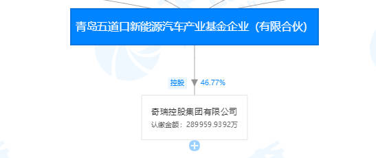 此前,青岛五道口合计投资144.49亿元,入股奇瑞汽车、奇瑞控股。其中,青岛五道口出资75.86亿元,取得奇瑞控股30.99%股权,成为奇瑞控股第一大股东;出资68.63亿元,获得奇瑞汽车18.52%股份。