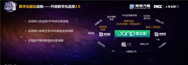 数字化驱动是邦邦汽服“2020邦赢计划”的三大战略之一:实现数字连接到数据集成到智能应用的转变。