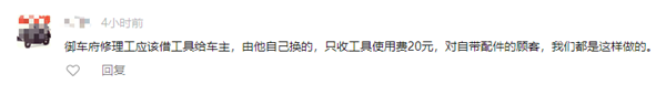 就自带配件的情况,一位老板给出建议:“借工具给车主,由他自己换,只收工具使用费20元”。