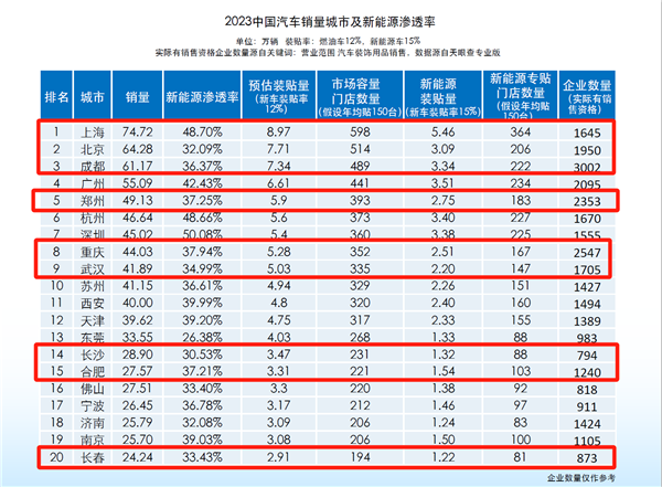 结合AC汽车在《2024车衣膜品牌门店调研报告》中汇总的2023年新能源渗透率城市排行数据来看,自2023年12月以来,转让门店靠前城市与新能源汽车渗透率前20城市重合度较高。新能源汽车渗透率前20的城市中半数上榜,剩下的也都在转让城市排名前列。