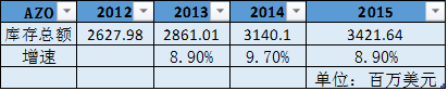 其中2015年第三季度在线销售额为8855万美元(总销售额24.93亿美元,占3.5%),比2014年第三季度的8313万美元增加了6.5%,所有在线销售都来源于AutoZone.com、AllData.com(销售诊断和修复相关的软件)和AutoAnything.com(2013年收购的互联网汽配零售商)。