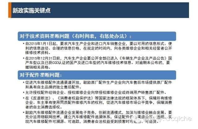主持人AC汽车后市场主编总结:这次十部委颁布的《指导意见》提供的是一个框架性指南,其主要宗旨是"让消费者有更多选择去享受更好、更便利的售后维修服务"。而整个市场的变化主要依靠政策引导下,产业链自下而上的推动,这里面消费者意识的觉醒非常关键--意识到"在汽修厂买到原厂配件或同质配件的几率大大提高",意识到"汽车保修期内,还能去4S店之外的专业维修厂进行服务"等等。
