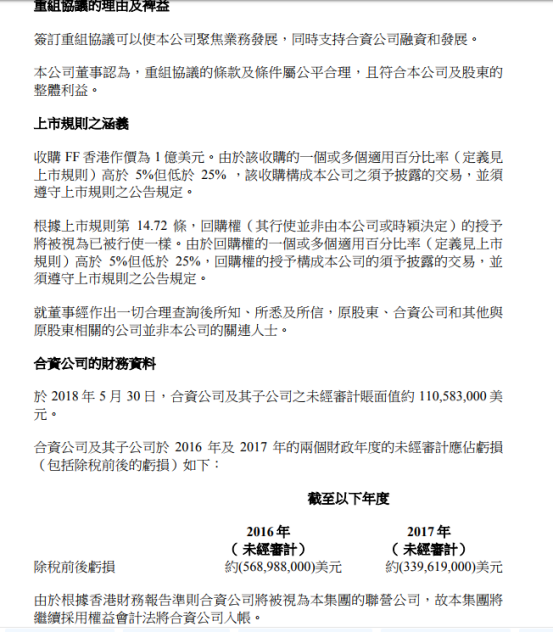 另外,双方原有协议将终止,恒大无需再向FF注入资金,并同意解除现存的质押。双方还同意撤销及放弃现有诉讼、仲裁程序及所有未来诉讼的权利。