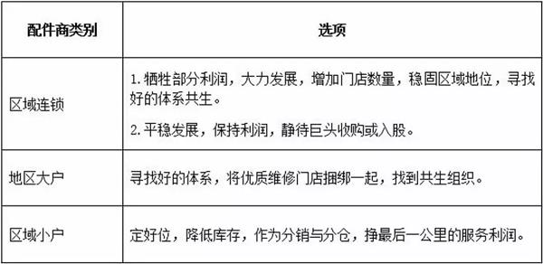 笔者认为,目前配件经销商需要根据自己的规模来做好定位。如下表: