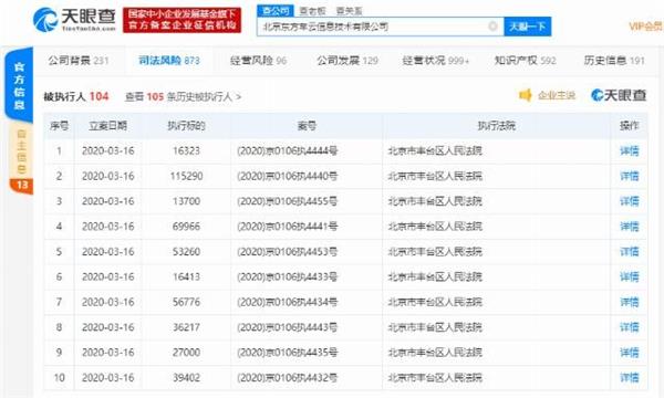 天眼查数据显示,2020年1月,王菲新增17条限制消费令,累计限制消费令101条。