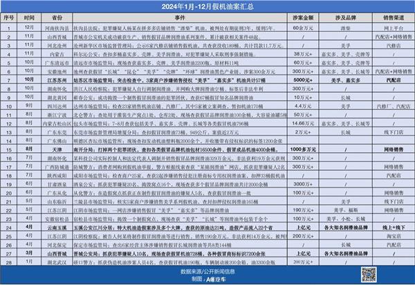 如根据广东省市场监管部门披露的数据显示,2024年该省平均每5天查办1起假机油案。而据不完全统计,2024年曝出了近30起假机油案件,涉案金额累计高达2.6亿元。