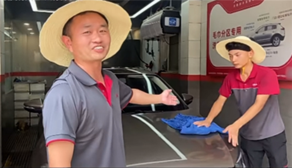 炎炎烈日,他和店员经常戴着草帽为用户洗车,人称“帽子哥”。